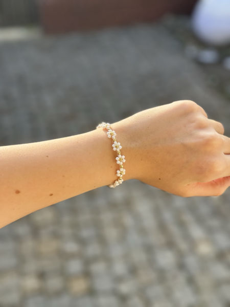 Ta wyjątkowa bransoletka łączy w sobie subtelność bieli i blask złota, tworząc elegancki i ponadczasowy dodatek, który doskonale dopełni każdą stylizację. Wykonana z precyzyjnie dobranych koralików, bransoletka wyróżnia się modnym wzorem, który jest aktualnym hitem w biżuteryjnych trendach. Idealna zarówno na co dzień, jak i na specjalne okazje, doda szyku i elegancji każdemu lookowi.
