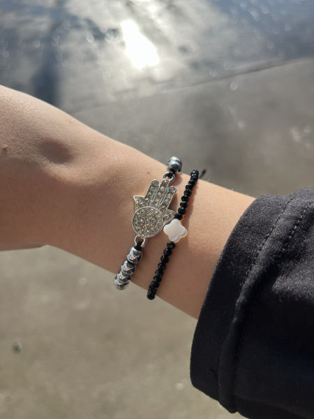 Stylowa bransoletka ze srebrnych hematytów z ozdobną ręką Fatimy wysadzaną cyrkoniami, na regulowanym sznurku. Idealna do codziennych stylizacji, łącząca elegancję z symboliką ochrony. Biżuteria, która doda blasku i harmonii każdemu lookowi.